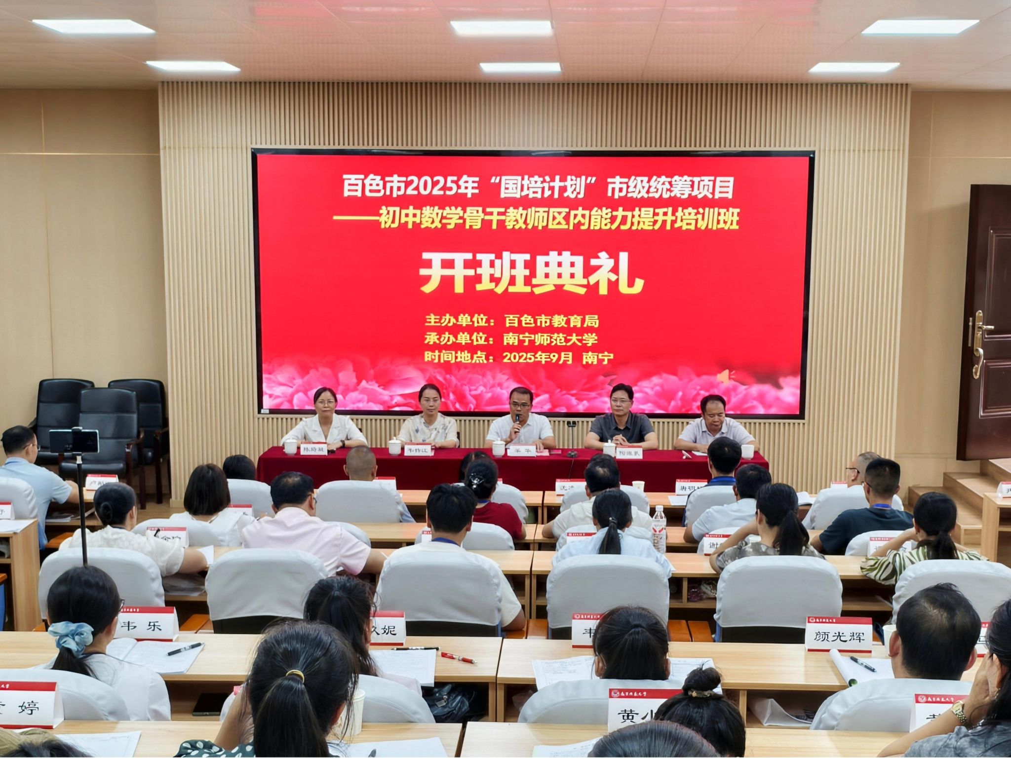 副院长韦扬江出席典礼,来自百色市各县(区)的80名初中数学骨干教师参加本次培训。