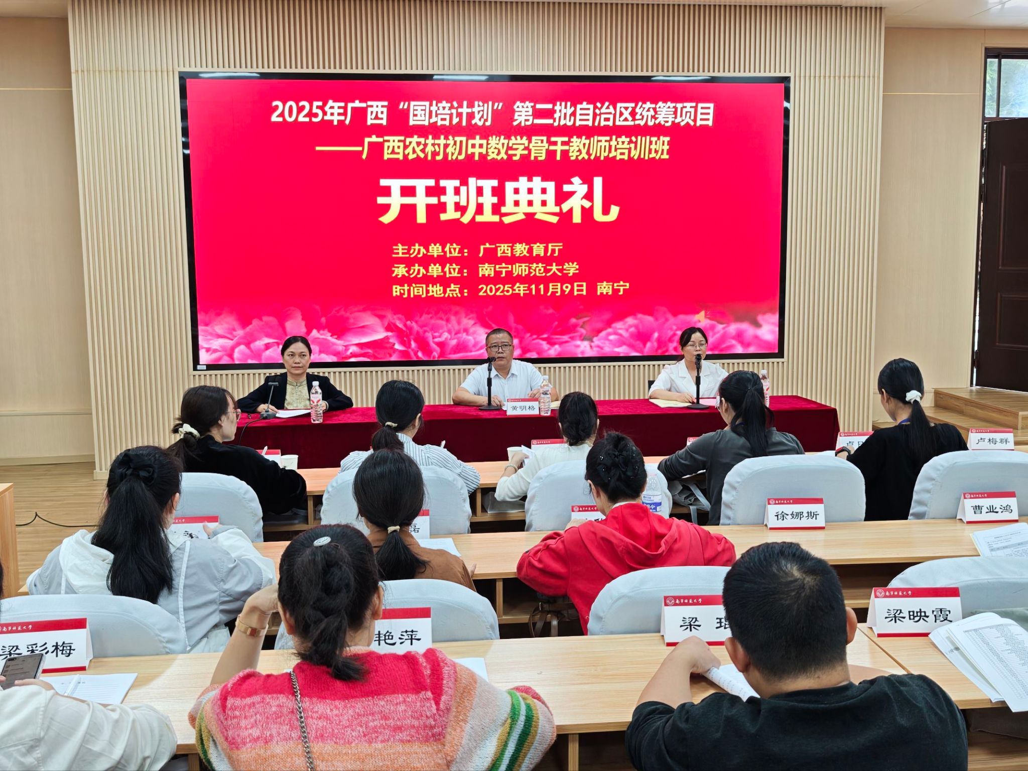 据悉,本次培训为期12天,采用“线上线下融合+集中研修+跟岗实践”的模式,设置教育政策解读、数学学科前沿动态、核心素养导向的教学设计等模块,邀请国内知名教育专家和一线教学名师担任授课教师,确保培训实效。本次“国培计划”项目的实施,是落实教育部“乡村教师素质提升计划”的重要举措,将进一步推动优质教育资源下沉,助力广西农村初中数学教师队伍专业化建设,为义务教育优质均衡发展提供坚实支撑。