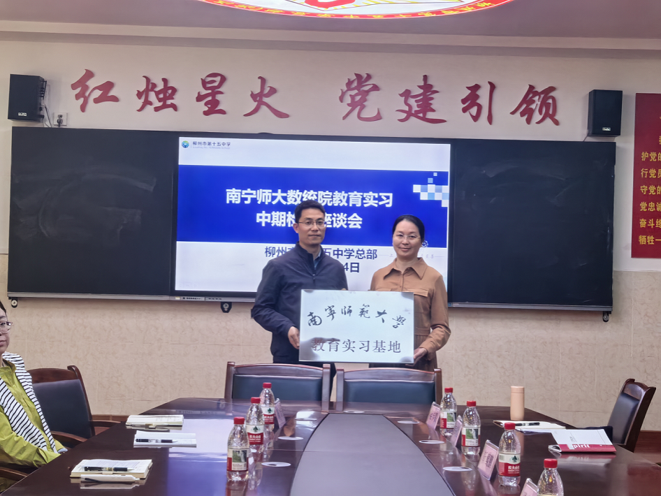 副院长韦扬江、团委书记梁卡霖,柳州市第十五中学总部执行校长梁欢、教务处副主任李燕利等校领导和数学教研组教师代表出席仪式,我校2023级数学与应用数学的实习生代表也参加了授牌仪式。