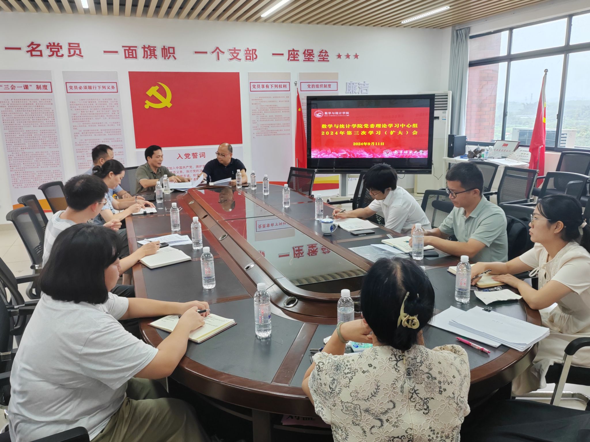 党委理论学习中心组在武鸣校区数统楼A501党员活动室召开党委理论学习中心组2024年第三次学习(扩大)会,该院党委理论学习中心组成员、办公室主任、学生支部书记参加会议,会议由该院党委书记余敢才主持。