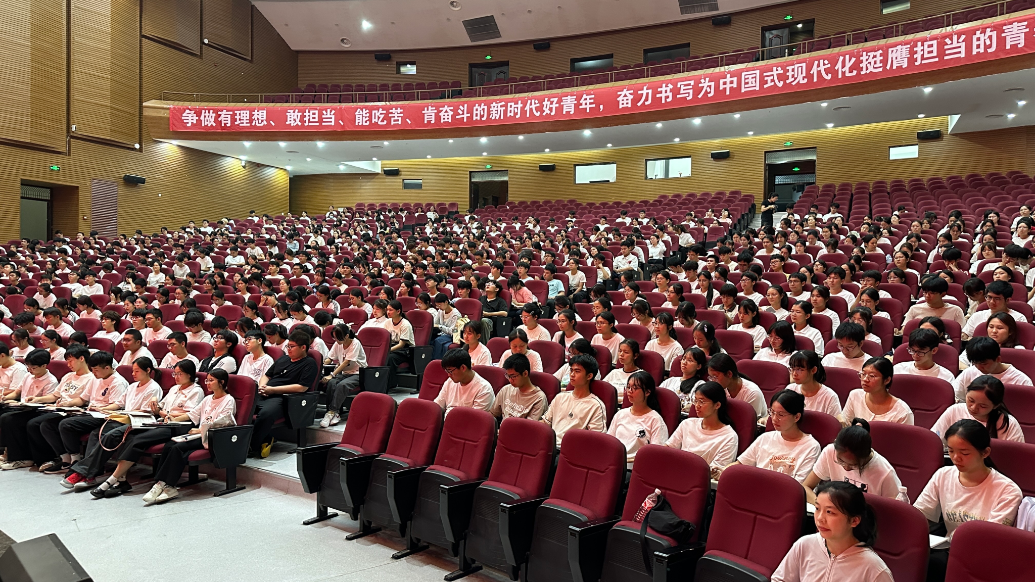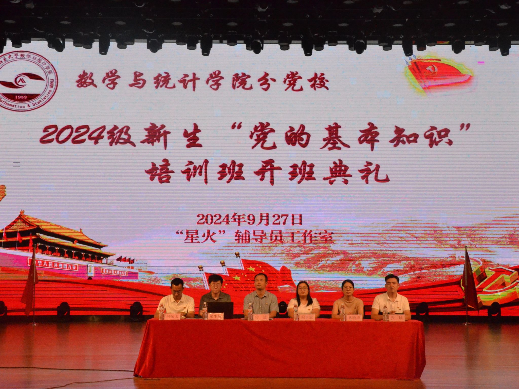 分党校于9月27日晚在武鸣校区千人演播厅开展2024级新生“党的基本知识”培训班开班典礼,该院党委付进副书记、全体辅导员、本科生第三党支部、本科生第四党支部、全体新生参加此次活动。