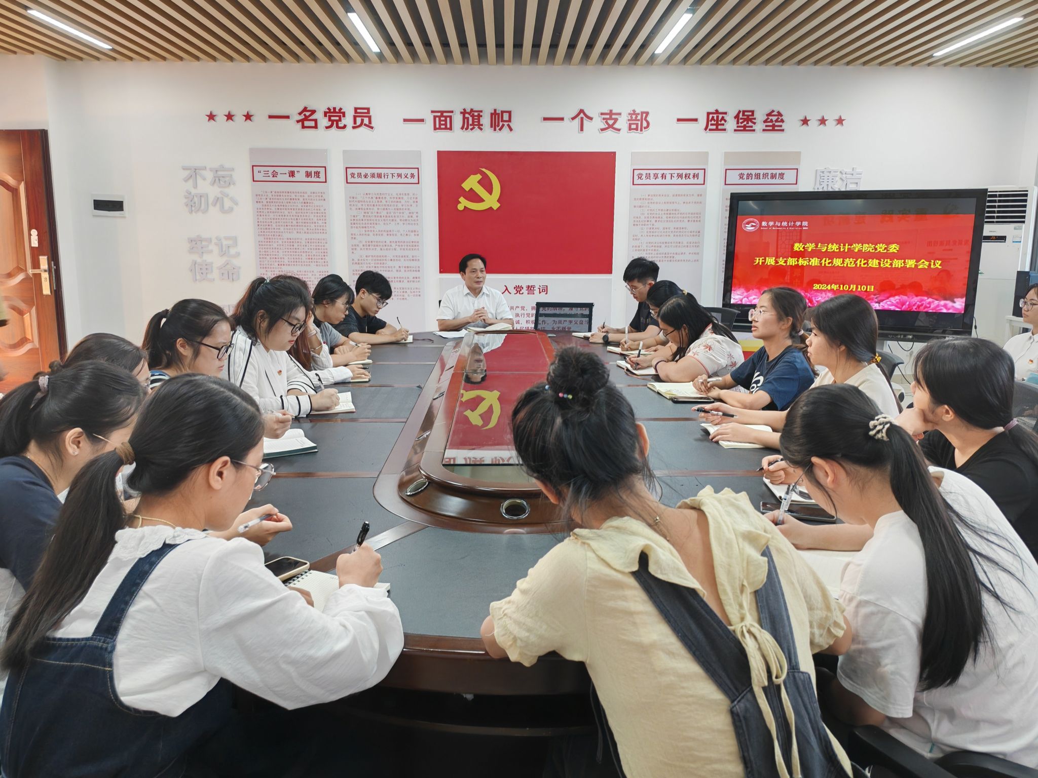 于10月10日下午在数统楼A501党员活动室召开基层党组织标准化规范化建设部署会议。学院党委余敢才书记、各支部书记、支委参加会议。