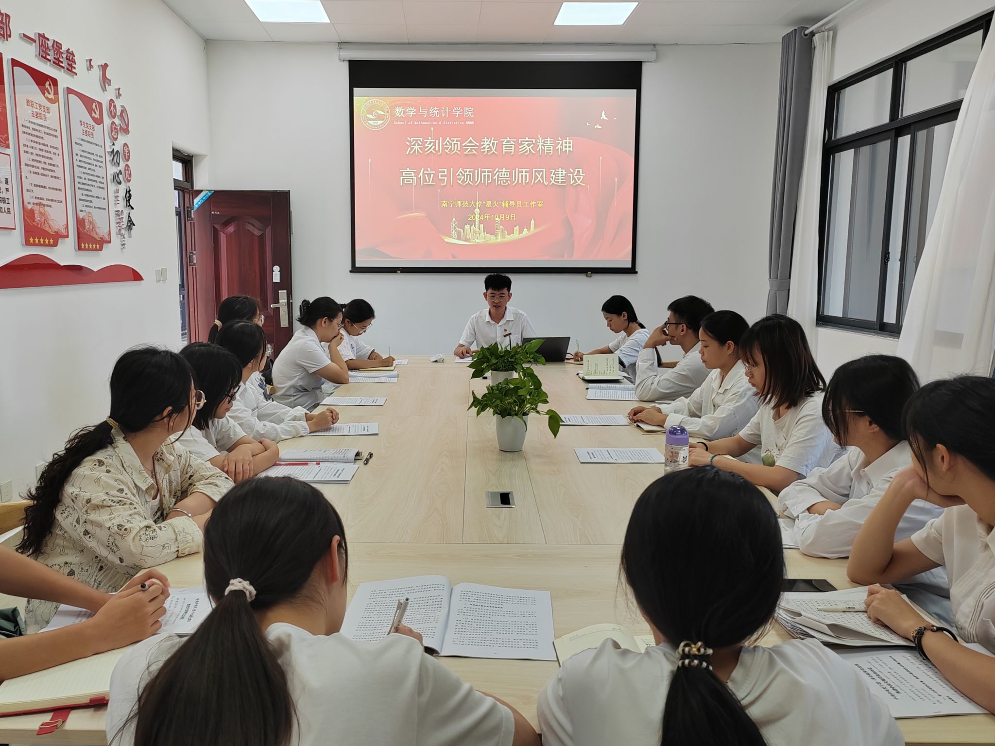 于10月9日下午在武鸣校区兰园党员活动室召开“弘扬教育家精神”主题党课。本科生第二、三党支部参与此次党课,本次党课由辅导员第生辉老师主讲。