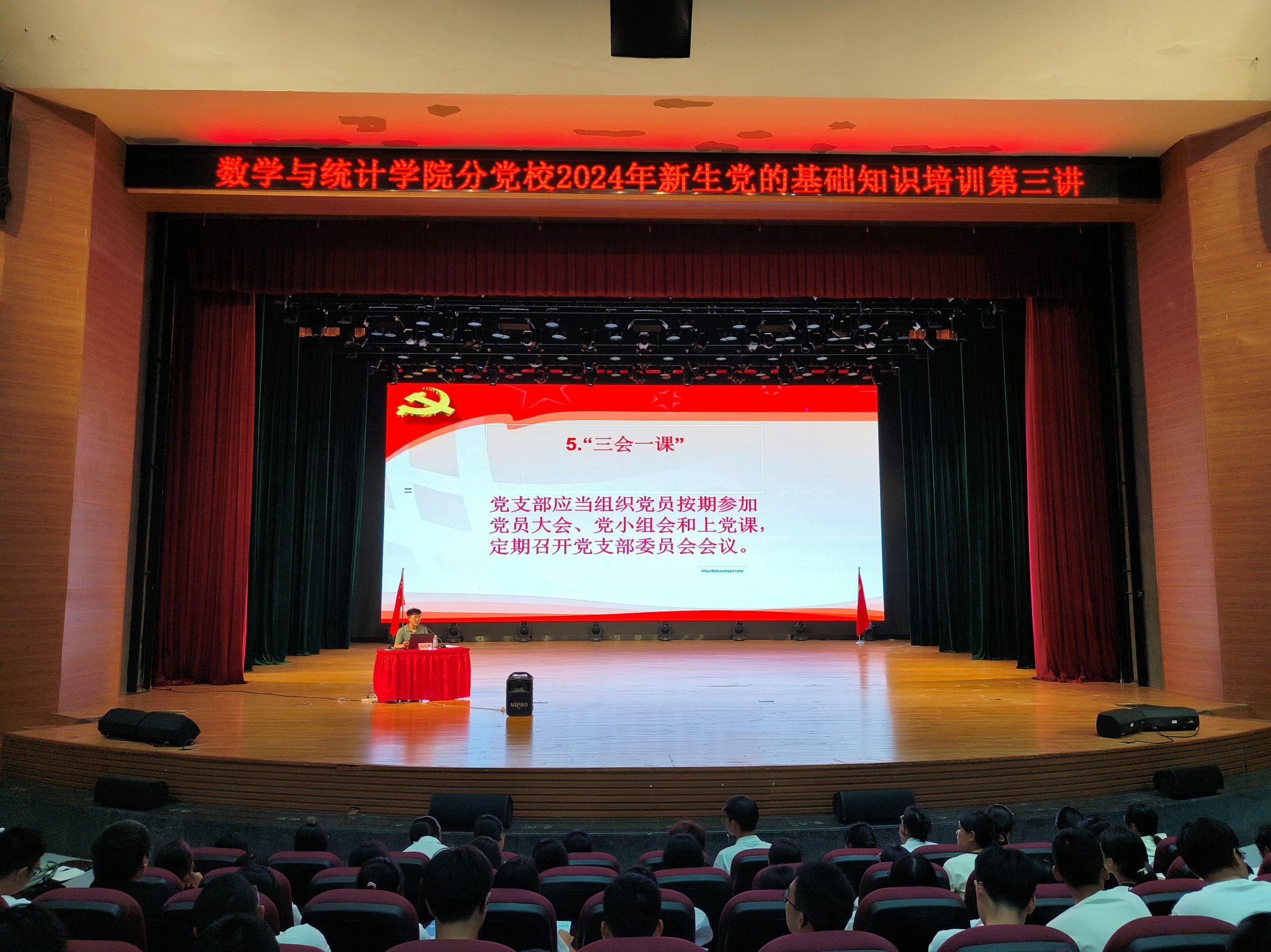 分党校于10月18日晚在武鸣校区千人演播厅开展2024级新生“党的基本知识”培训班第三讲,由好看视频