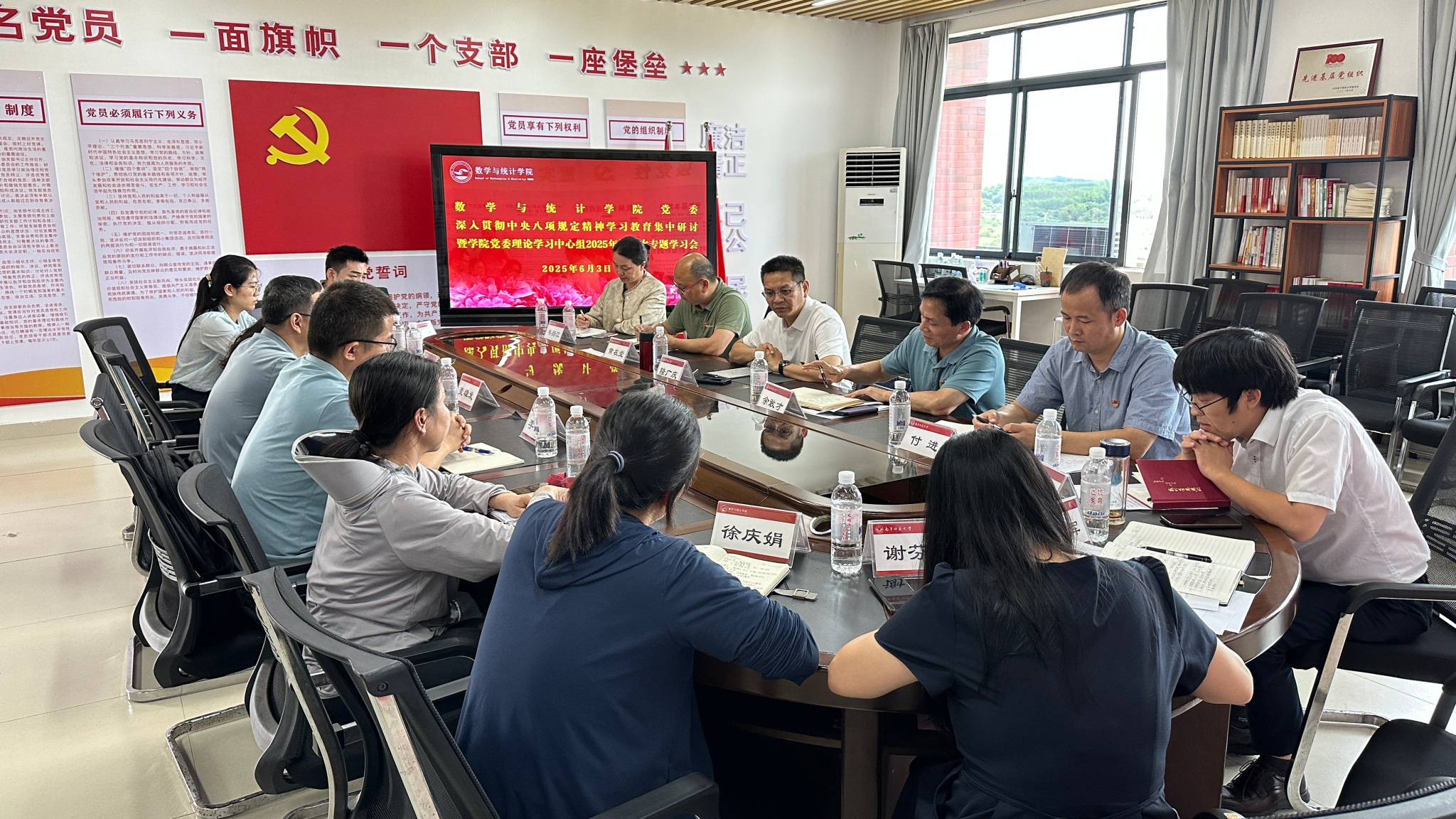 党委在数统楼A501党员活动室召开深入贯彻中央八项规定精神学习教育集中研讨暨学院党委理论学习中心组2025年第二次专题学习会,学校党委副书记、校长隆广庆到会巡听旁听。学院党委理论学习中心组成员参加会议,学院学生党支部书记列席会议,学院党委书记余敢才主持会议。会前,与会人员进行了为期三天的个人自学。