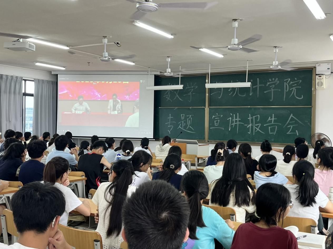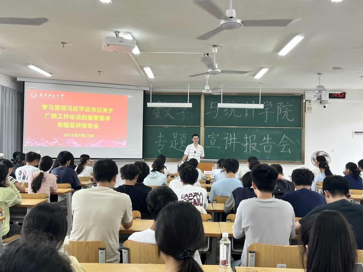 组织师生在实验2-A603、C504教室集中观看贯彻习近平总书记关于广西工作论述的重要要求专题宣讲报告会。校党委书记张鹏在会上作题为《牢记殷切嘱托 贡献青春力量 为奋力谱写中国式现代化广西篇章挺膺担当》的专题报告。