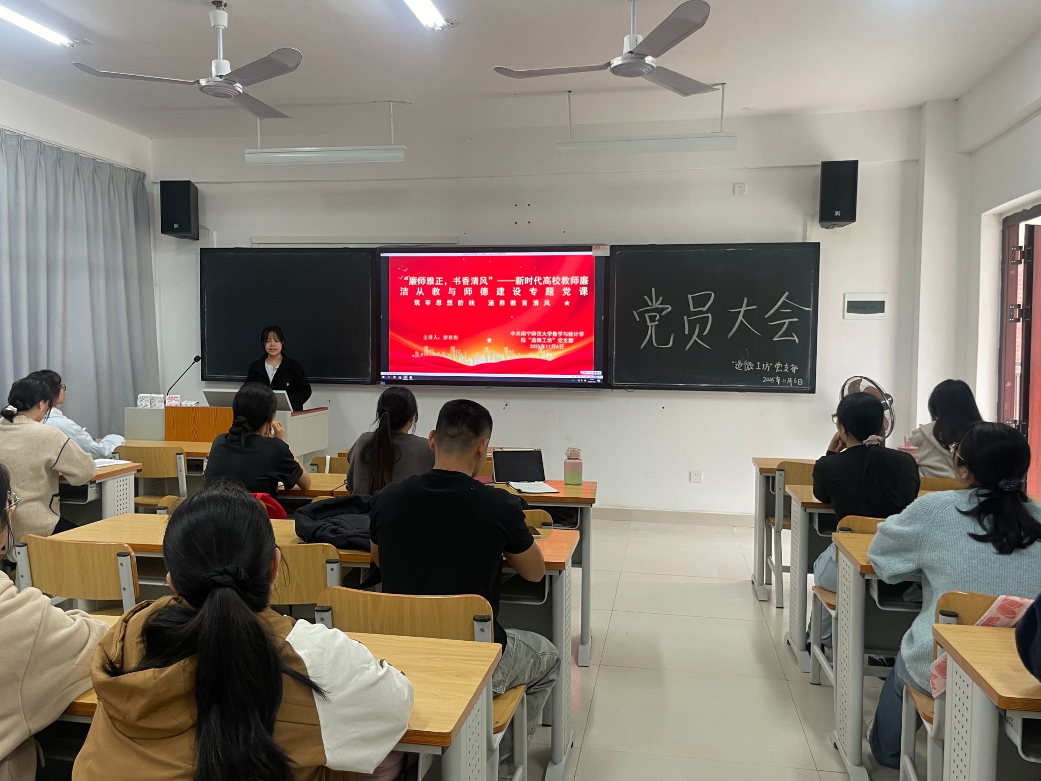 “造微工坊”党支部在1号实验楼C205教室开展“廉师雅正,书香清风”---新时代高校教师廉洁从教与师德建设专题党课学习活动。本次活动采用线上、线下相结合的方式,由党支部组织委员廖秋梅同志主持,全体成员参加。
