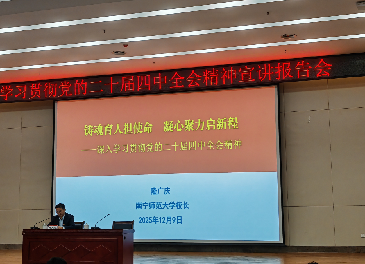 12月9日,学校在武鸣校区图书馆报告厅举办主题为“铸魂育人担使命,凝心聚力启新程”的学习贯彻党的二十届四中全会精神宣讲报告会。好看视频