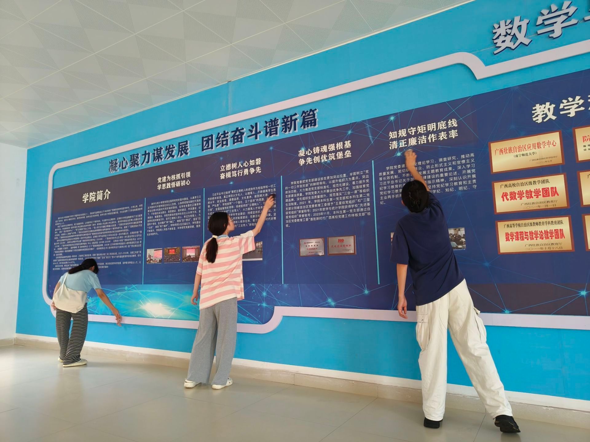 活动开始前,同学们带着劳动工具按时来到数统楼大厅集合,经过合理分工,开始各小组的清扫任务。每个小组负责不同的区域,从教室到走廊,从办公室到实验室,每个人都积极参与,用实际行动诠释着“资助筑梦,诚信育人”的主题。他们不仅积极参与清扫,还在休息间隙分享了自己在资助政策支持下努力学习、回馈社会的故事,传递出诚信与感恩的正能量。同学们忙碌的身影展现了数统学子阳光向上、积极健康的精神状态。