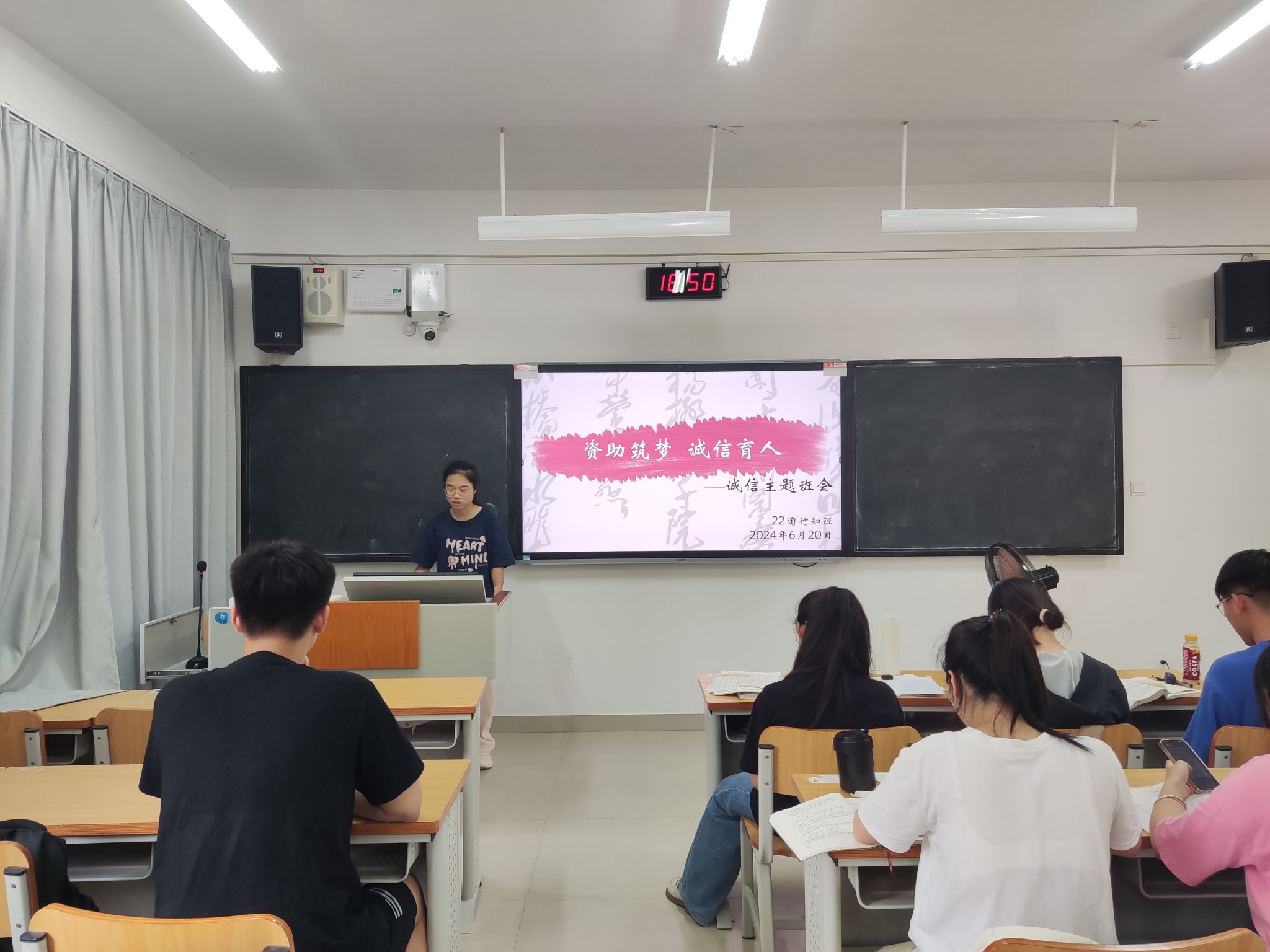 各班于6月16日至6月21日开展了以“资助铸梦,诚信育人”为主题的班会。