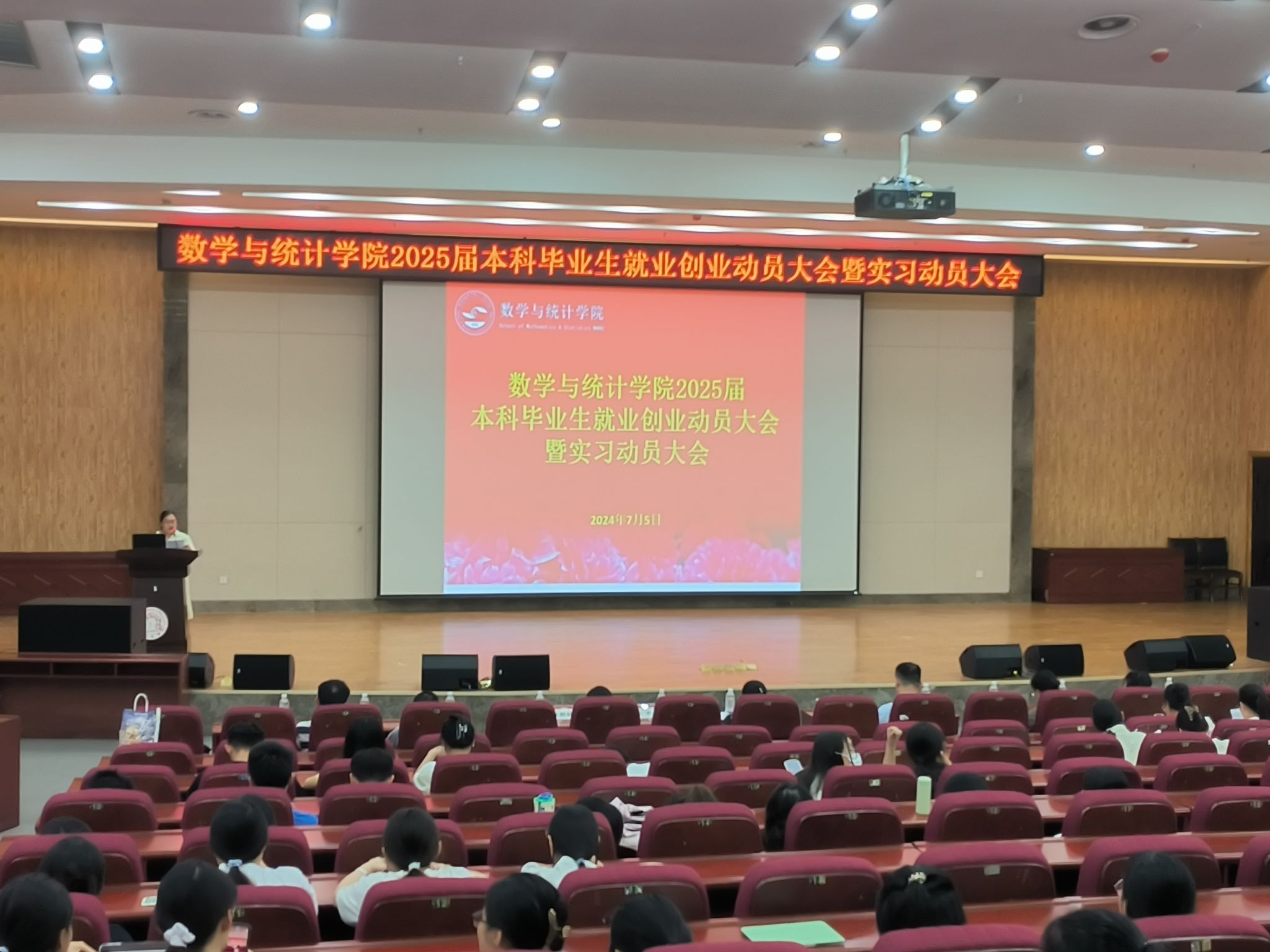 在图书馆报告厅举办2025届本科毕业生就业创业动员大会,该院党委付进副书记、韦扬江副院长、2021级班主任、全体辅导员以及2025届本科毕业生同学参加本次会议。