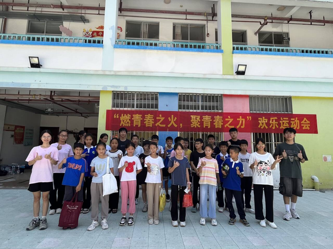 “澎湃·朋π”实践服务队在南宁市武鸣区马头镇中心学校开展以“燃青春之火,聚青春之力”为主题的游园运动会。