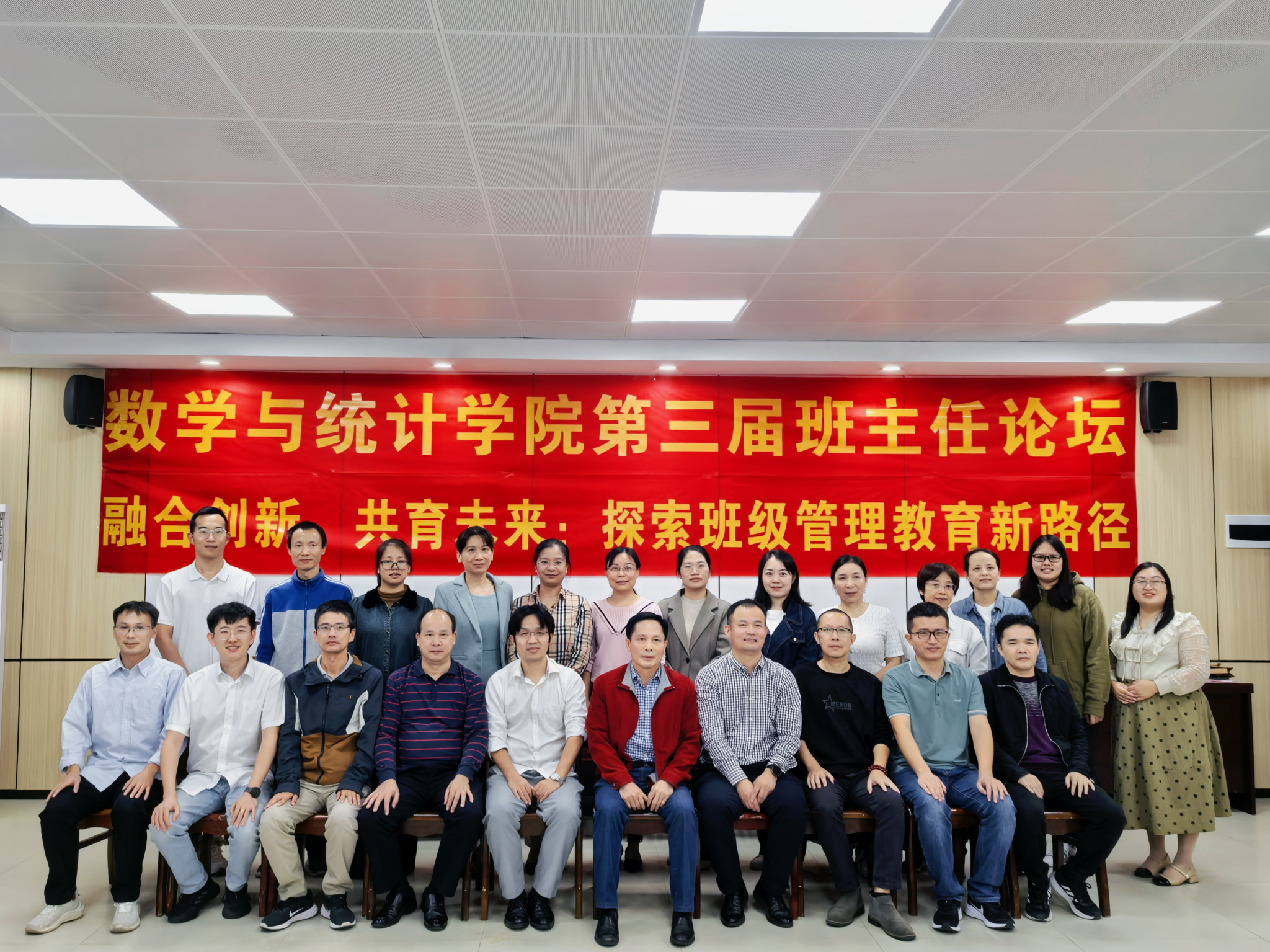 于数统楼A601举办“融合创新 共育未来:探索班级管理教育新路径”第三届班主任工作论坛,此次论坛由“星火”辅导员工作室承办。学院党委余敢才书记、党委付进副书记、韦扬江副院长、刘利斌副院长、全体班主任、辅导员老师参加此次论坛。