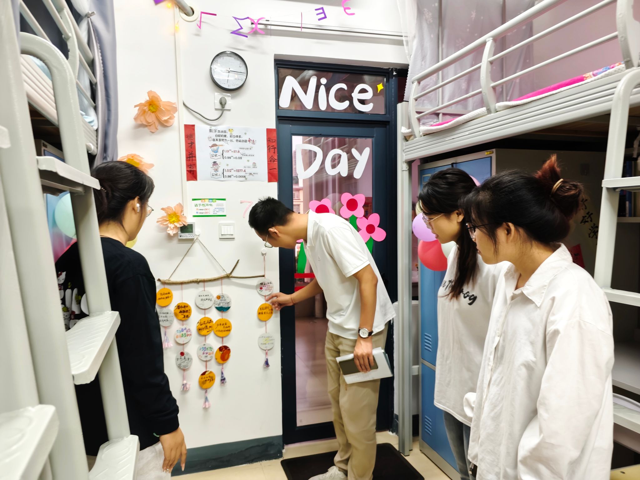 活动中,同学们积极发挥创意,团结协作,把班级文化同宿舍文化相结合,通过照片墙、书画作品、专业知识等元素对宿舍进行精心装饰,使宿舍充满青春活力与浓郁的文化氛围。老师们对宿舍的整体面貌予以肯定,并指出,学院高度重视宿舍文化建设,通过宿舍文化建设促进宿舍人际和谐、提升宿舍风貌、营造浓厚文化氛围,希望各宿舍能够持续深入宿舍文化建设,在符合规定的前提下不断丰富宿舍文化内涵,以优良舍风推动班风、院风建设。