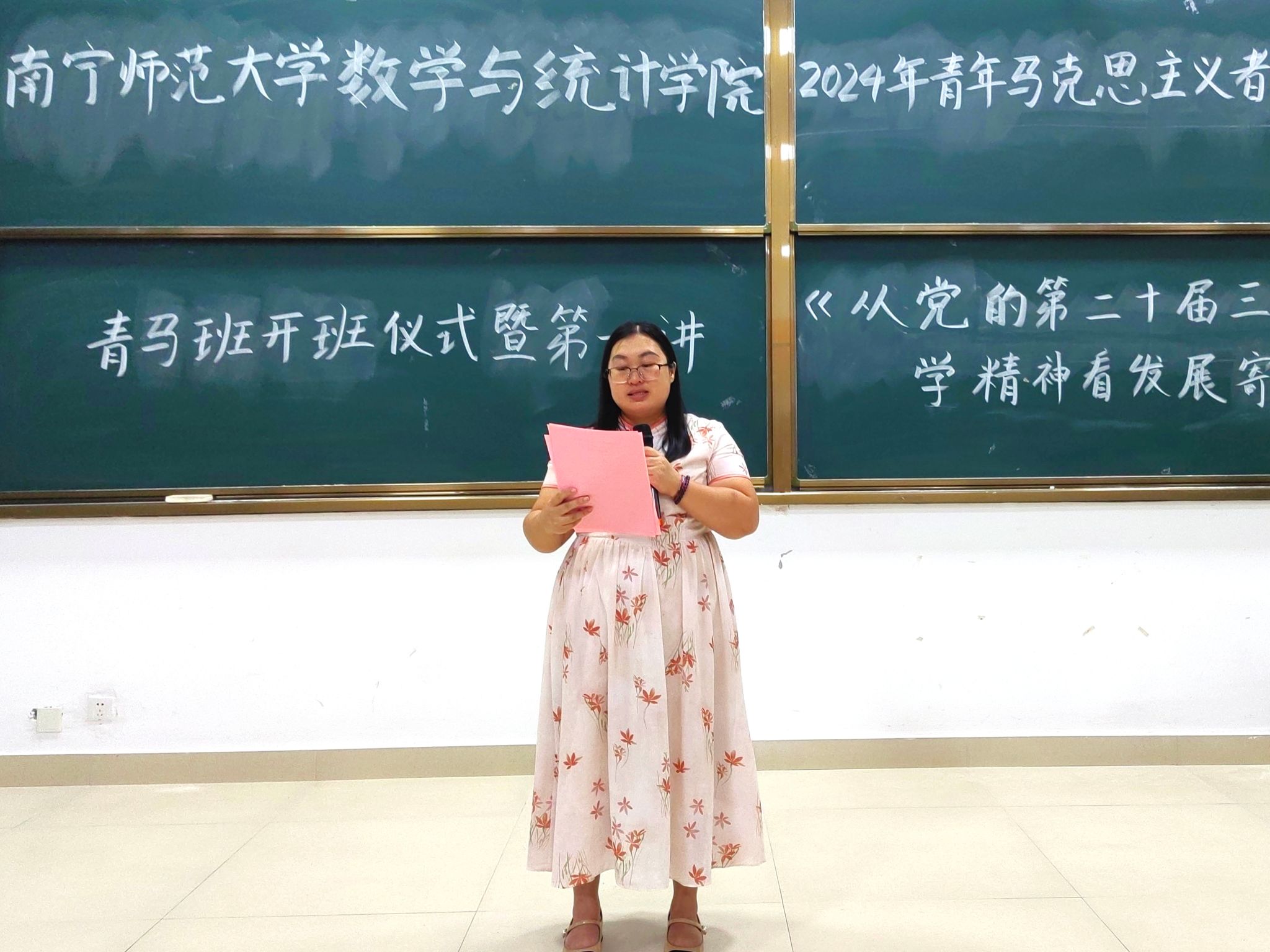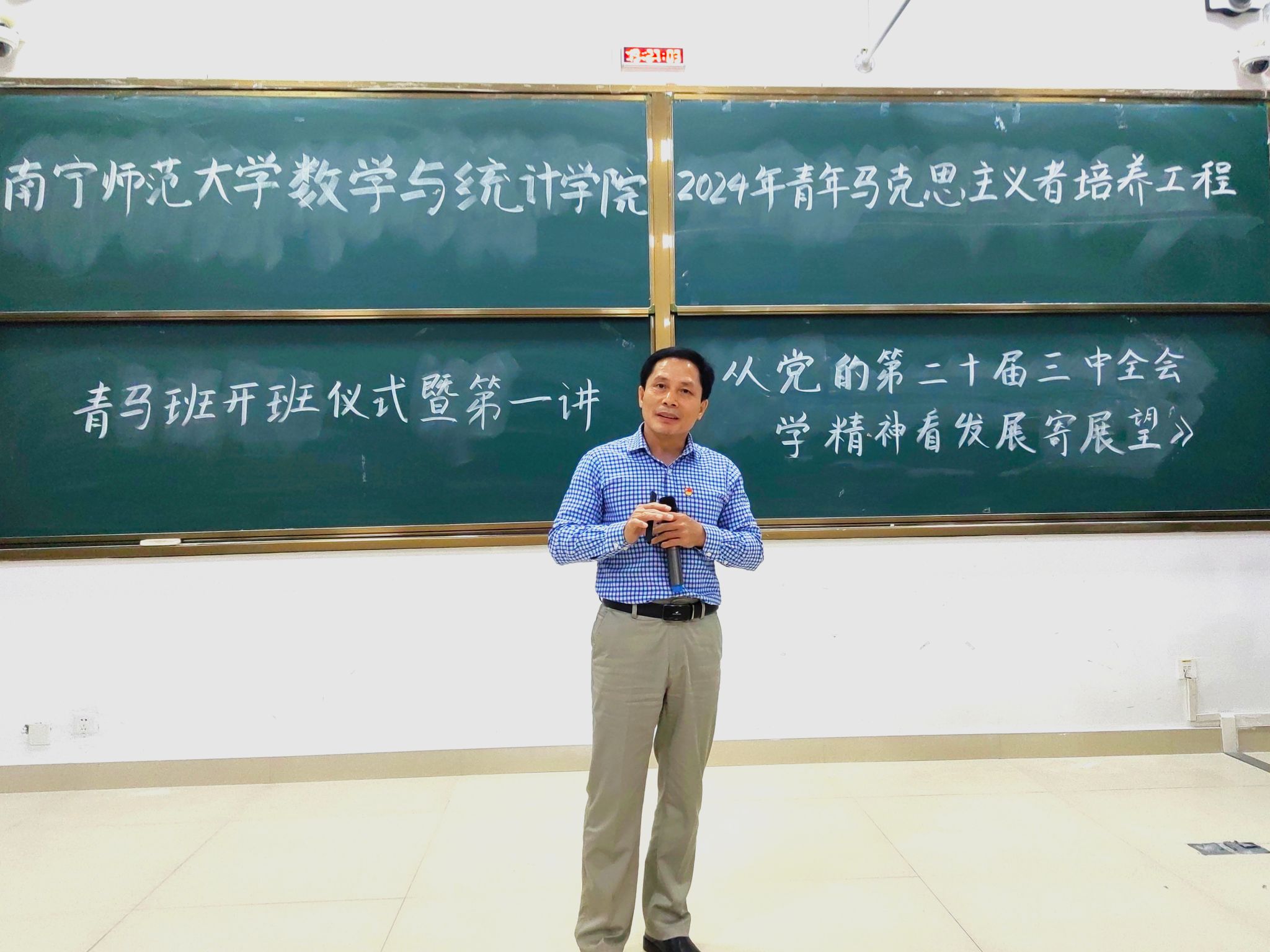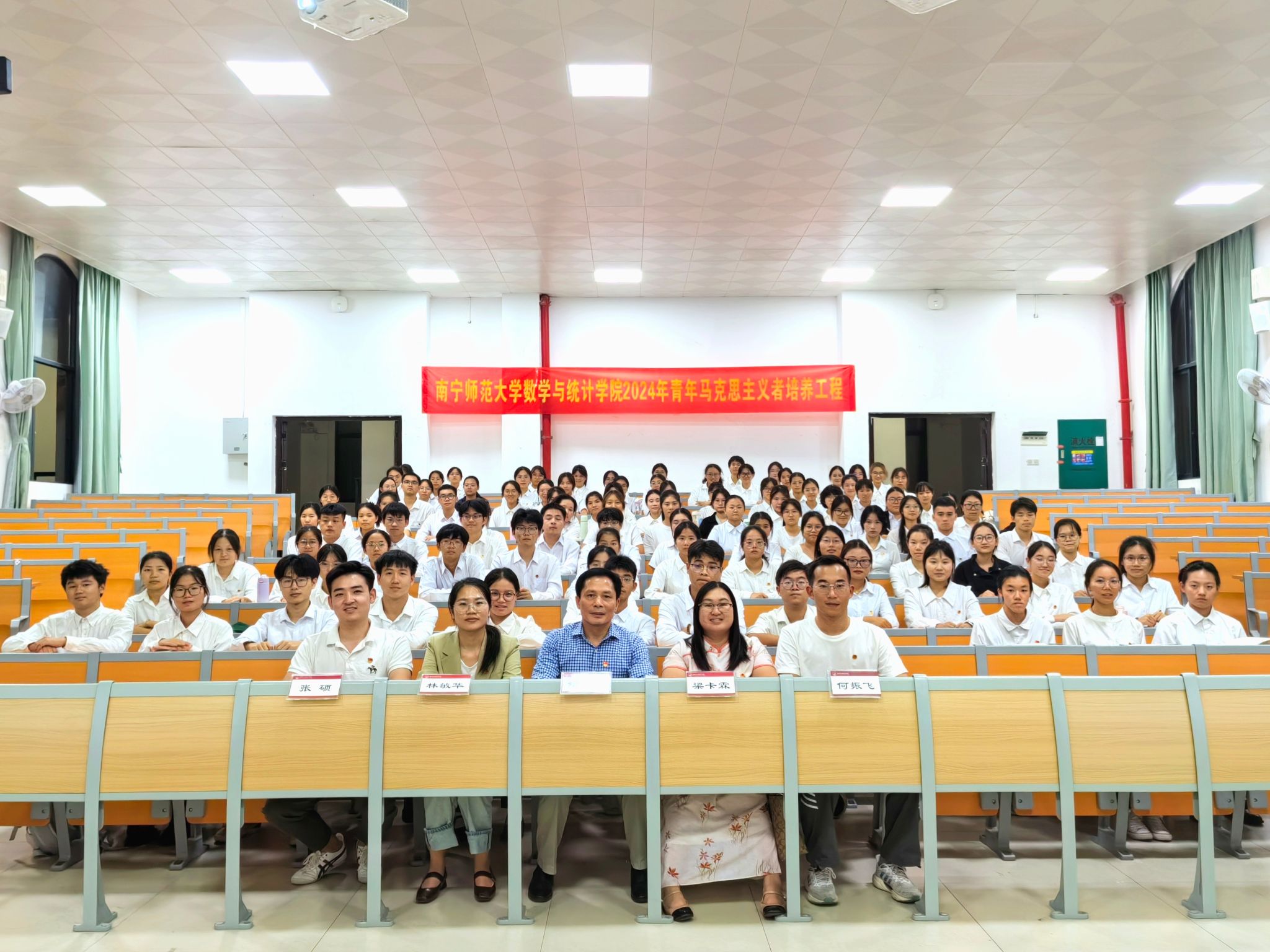 于11月11日在武鸣校区武2-209教室开展2024年青年马克思主义者培养工程青马班开班仪式暨第一讲《从党的二十届三中全会学精神、看发展、寄展望》。学院党委余敢才书记、团委书记梁卡霖、辅导员林敏华老师、何振飞老师、张硕老师参加此次活动。