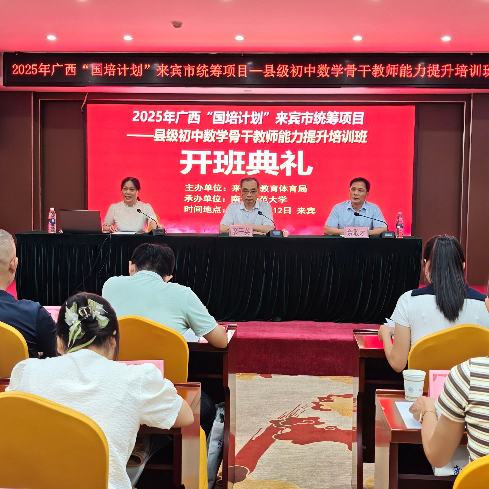 9月12日,2025年广西“国培计划”来宾市统筹项目——县级初中数学骨干教师能力提升培训班与县级小学数学骨干教师能力提升培训班的开班典礼,在来宾市同步举行。两项培训均由好看视频