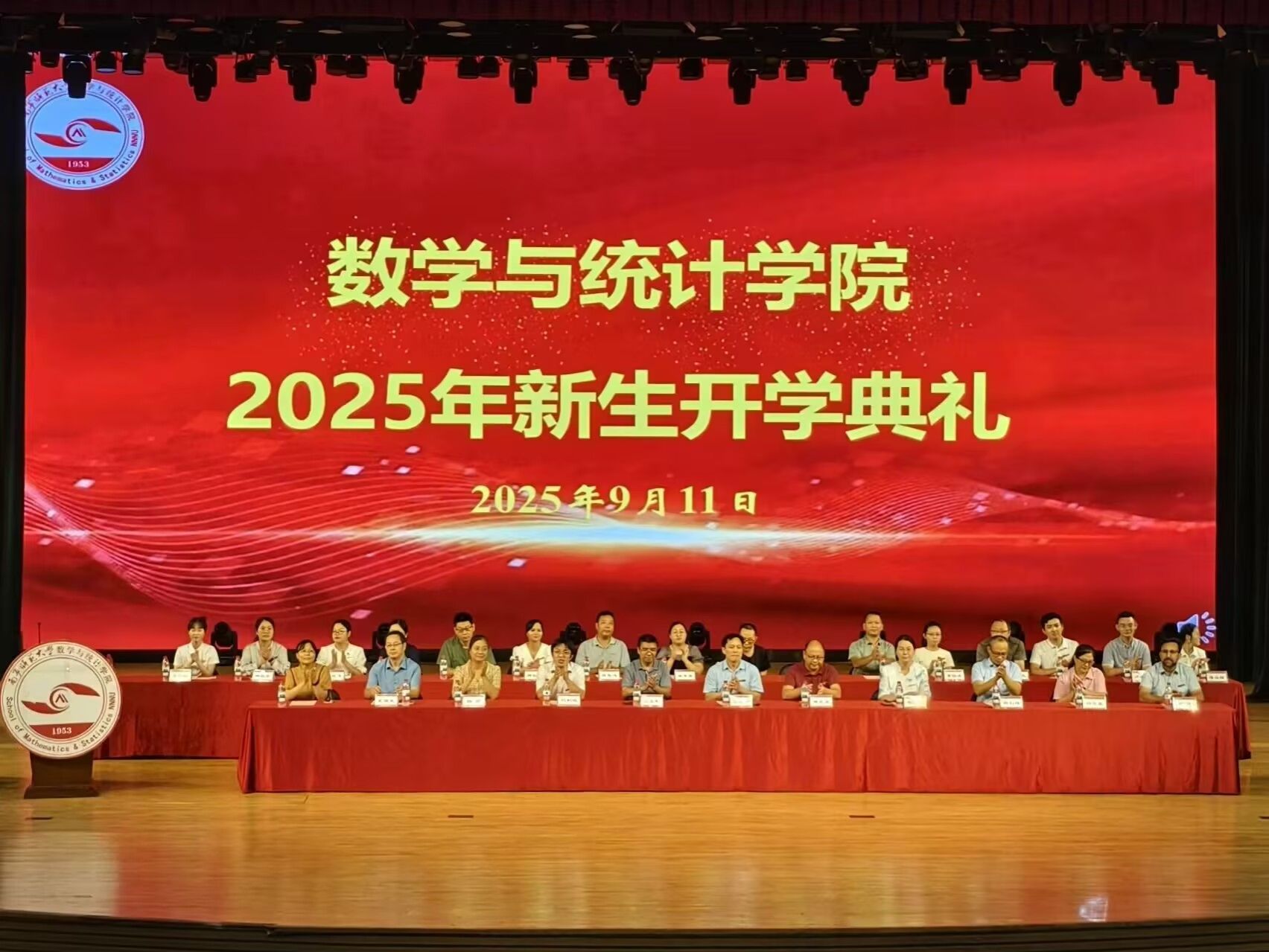 典礼在庄严的国歌声中拉开序幕。随后,学院领导、老师代表共同为新生代表佩戴校徽。学生代表们围绕个人品格的培养、学业研究的科学方法等方面与同学们进行分享,充分展现了数统学子的青春担当与蓬勃力量。教师代表刘艳萍结合教学实践,分享学术探索的方法与态度;研究生导师代表麦雄发聚焦科研初心,为新生传递学术经验与奋斗方向。现场播放的学校宣传片,让新生直观感受学校办学实力、硬件设施,更沉浸式领略了校园活力与人文温度。最后,黄在堂院长回顾学校发展历程与办学理念,鼓励新生深耕学术,以干劲投身实践,以坚韧直面挑战,在突破自我中成长。伴随着全体师生合唱的悠扬校歌,本次开学典礼圆满落幕。