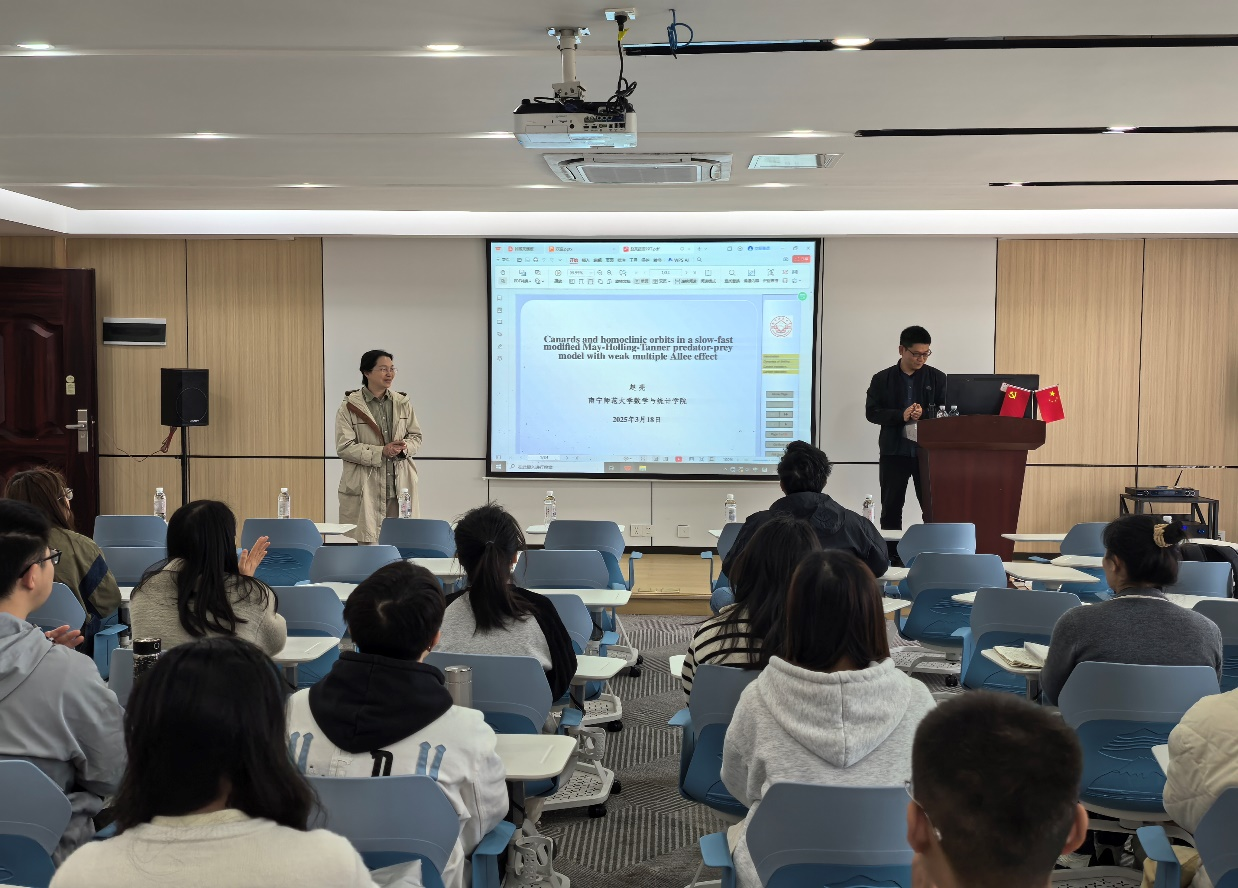 2025年3月18日,好看视频 的赵亮博士为全院师生带来了一场题为《重弱AIIee效应奇异摄动捕食系统中的鸭现象研究》的精彩学术报告,他通过对几何奇异摄动理论(GSPT)和Canard理论的研究,以其深入浅出且极具启发性的解说,分享了他在该领域的最新研究成果和进展,揭示了复杂生态系统中捕食者与猎物种群动态的新机制。此次报告不仅获得了师生们的高度评价,还进一步促进了学院内部的学术交流与合作,体现了学院科研团队的新鲜活力。报告会由韦扬江副院长主持,学院部分教师、以及全体学术型研究生参加了此次学术活动。