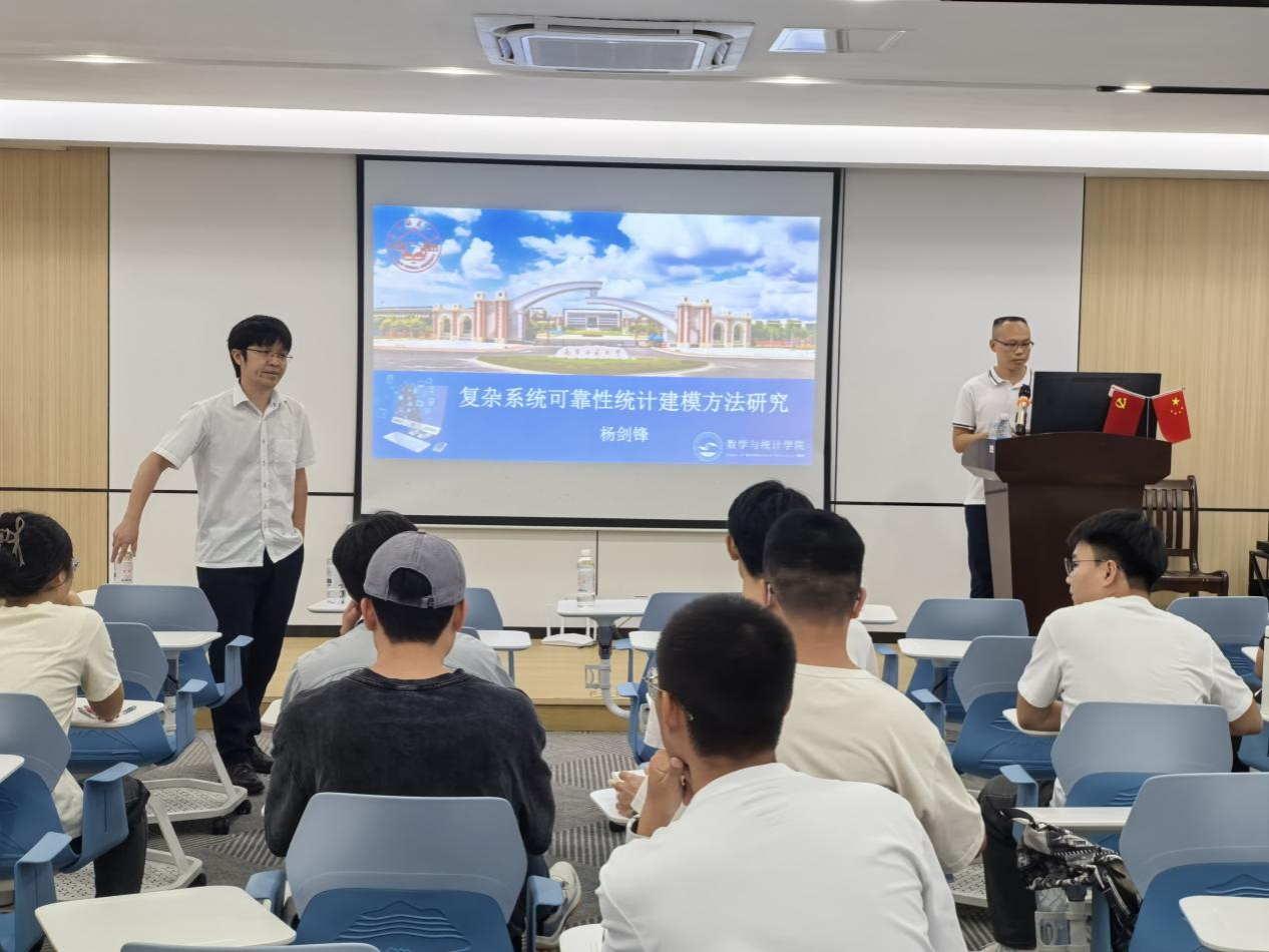 杨剑锋教授作《复杂系统可靠性统计建模方法研究》专题学术报告。本次学术活动由学院副院长刘利斌教授主持,学院部分老师及全体学硕研究生参加了此次学术活动。