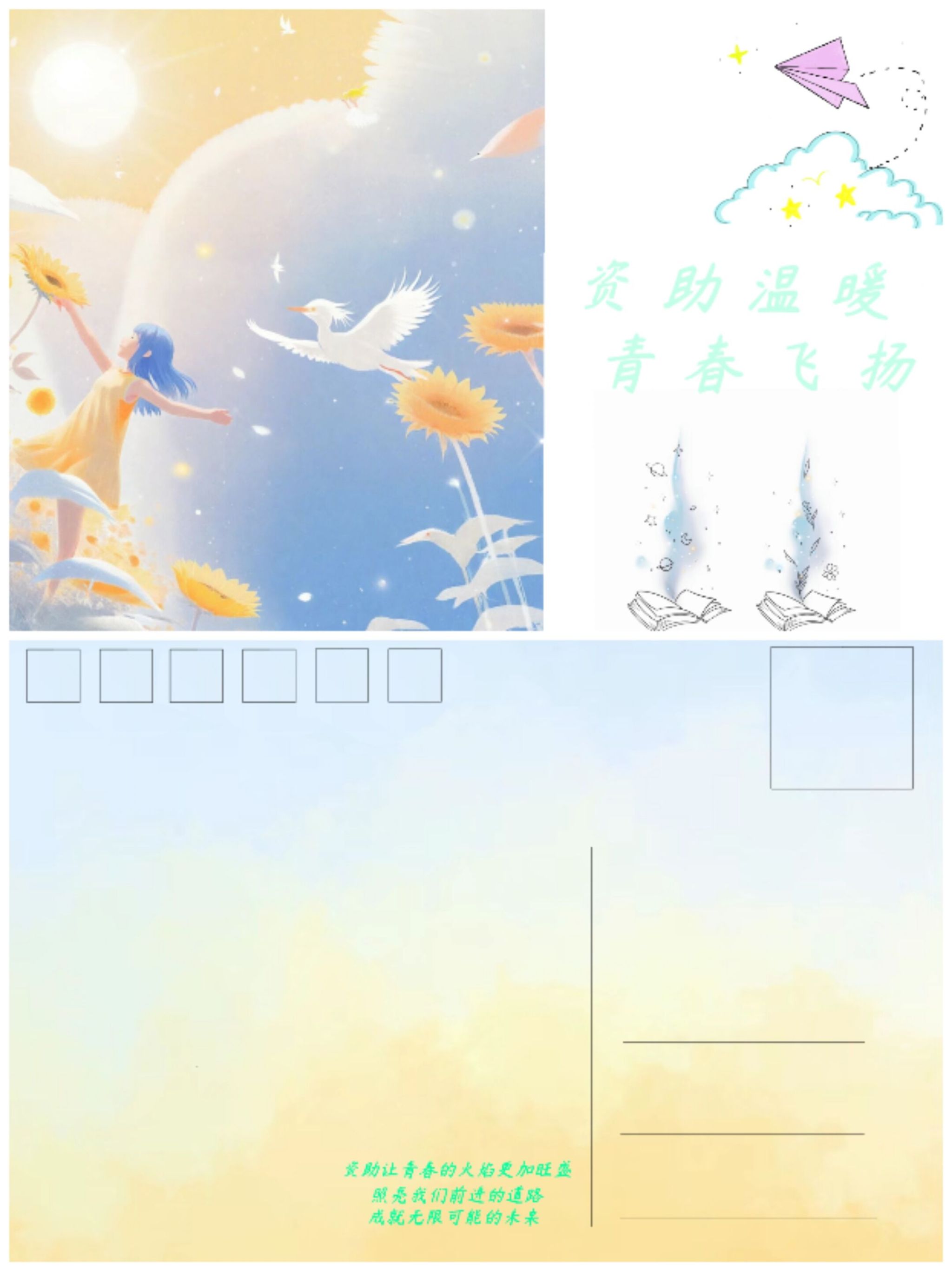 为了让学生更好地了解国家的资助政策,6月2日至6月5日,好看视频 面向该院学生举办了以“青春筑梦新时代,资助伴我向未来”为主题的明信片设计活动。