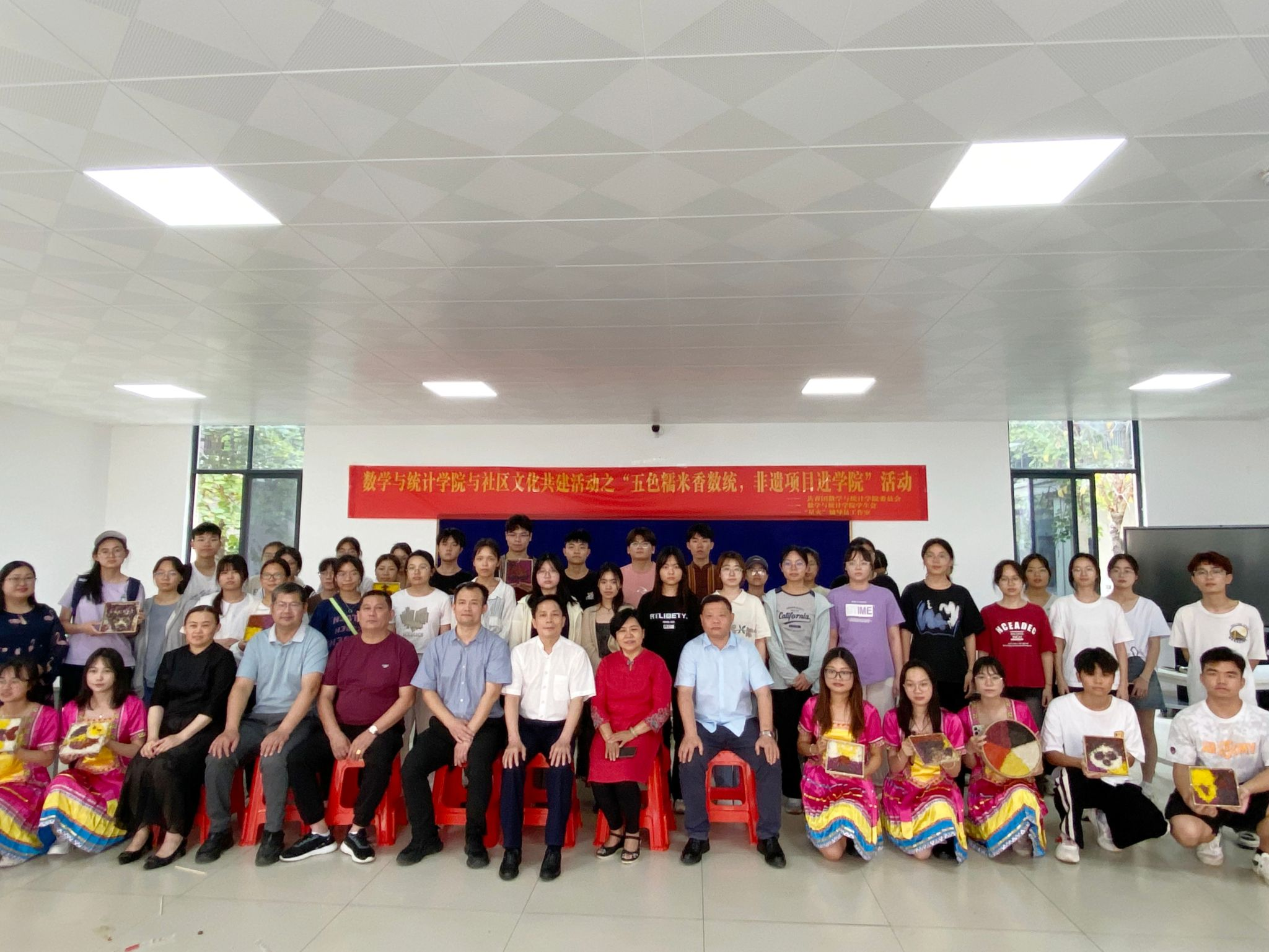 为丰富学院文化活动,弘扬非物质文化遗产的价值,感悟非遗美食的魅力,4月23日下午,好看视频 在数统楼一楼大厅与武鸣和平解放社区共同开展大学—社区文化共建活动之“五色糯米香数统,非遗项目进学院”活动。武鸣和平解放社区党委张健书记和社区居委会委员,好看视频 党委书记余敢才、副书记付进以及部分教师、辅导员和学生参加此次活动。