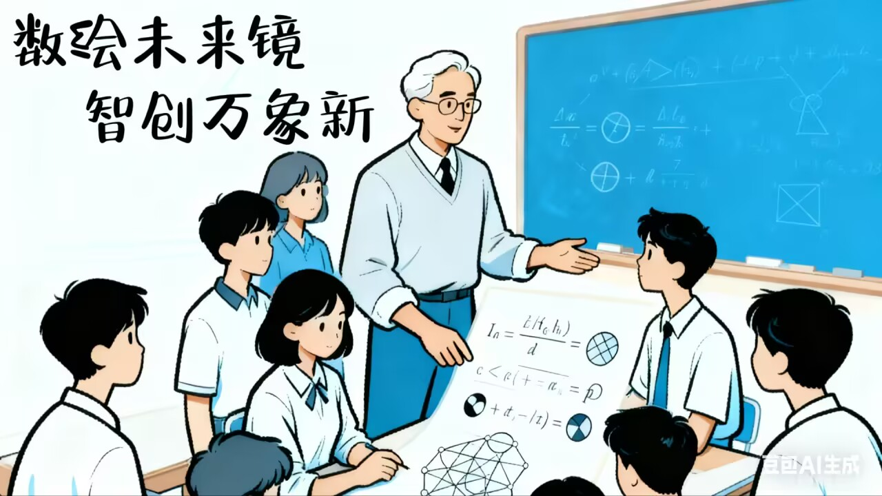 最终,24数本一班吴雨珊同学的《数理薪传·智创未来》斩获一等奖。该作品以“展现数学家的故事”为核心,通过AI工具生成一幅师生协作共同攻克数学难题的画面,既体现了教师的引领作用,又体现师风传承和数学科技创新,风格明丽积极,传递数学价值,成为“劳育+美育”融合的典型佳作。