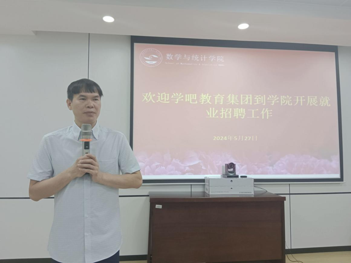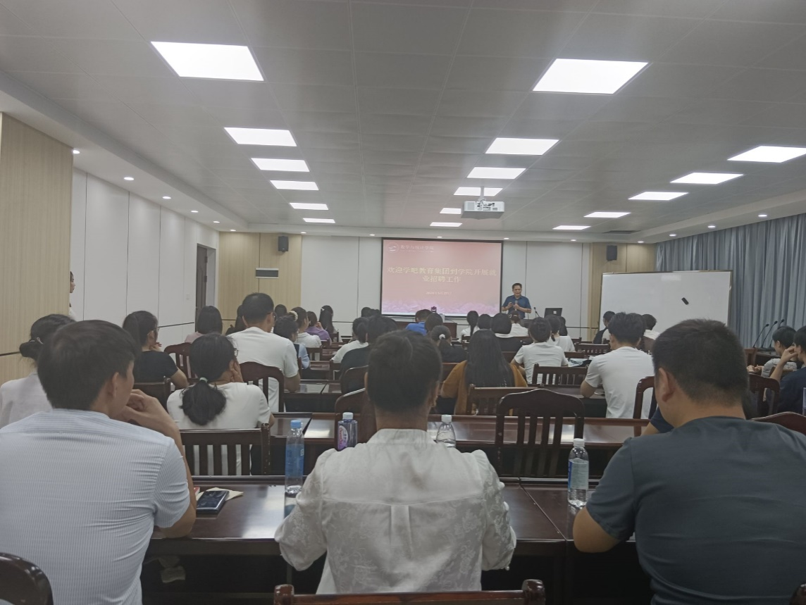 邀请学吧集团到学院开展就业招聘工作。本次招聘活动由我校2001级校友、学吧集团总经理覃龙韬带队到学院开展,该院党委余敢才书记、党委付进副书记莅临指导,辅导员梁卡霖老师主持。该院本、专科毕业生共计60余人参与本次招聘活动。