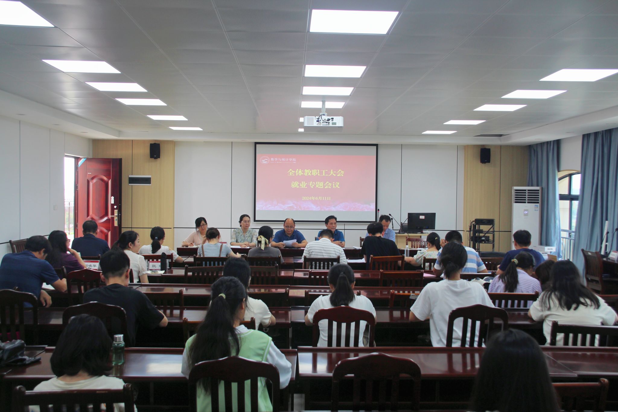 于数统楼A601教室召开2024届毕业生第三次就业创业工作推进会。该院领导班子、硕士研究生导师、毕业班班主任、全体行政教辅人员参加本次会议,本次会议由党委付进副书记主持。