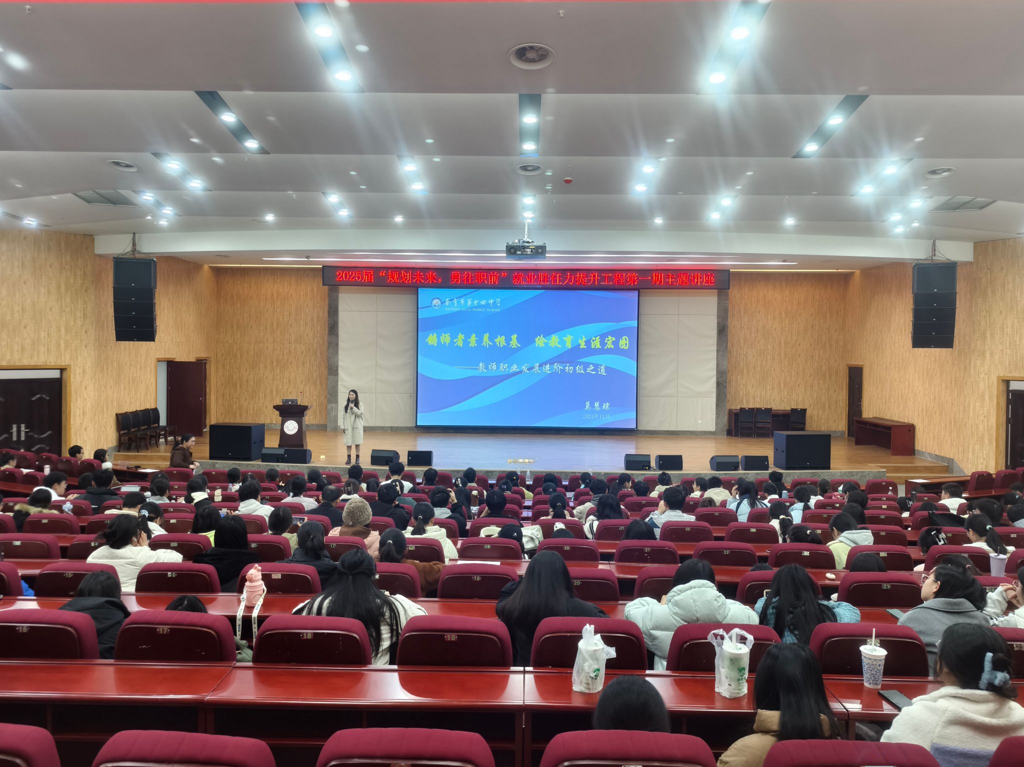 为增强毕业生就业意识,明晰就业方向,好看视频 于2024年12月30日在好看视频 武鸣校区图书馆报告厅举办了“规划未来,勇往职前”就业胜任力提升工程第一期主题讲座。本次讲座邀请到南宁市第十四中学教育集团校区副校长、校友莫慧琼老师担任主讲嘉宾,学院团委书记梁卡霖老师及21级全体毕业生参加此次讲座。