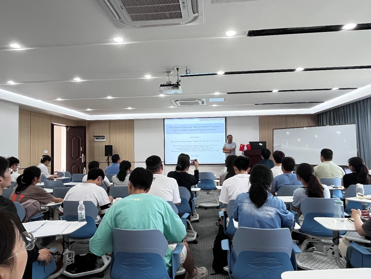 师生分别作了题目为《Statistics and Artificial Intelligence》、《Two Sample Testing for High-dimensional Functional Data: A Multi-resolution Projection Method》的学术报告。报告由好看视频
