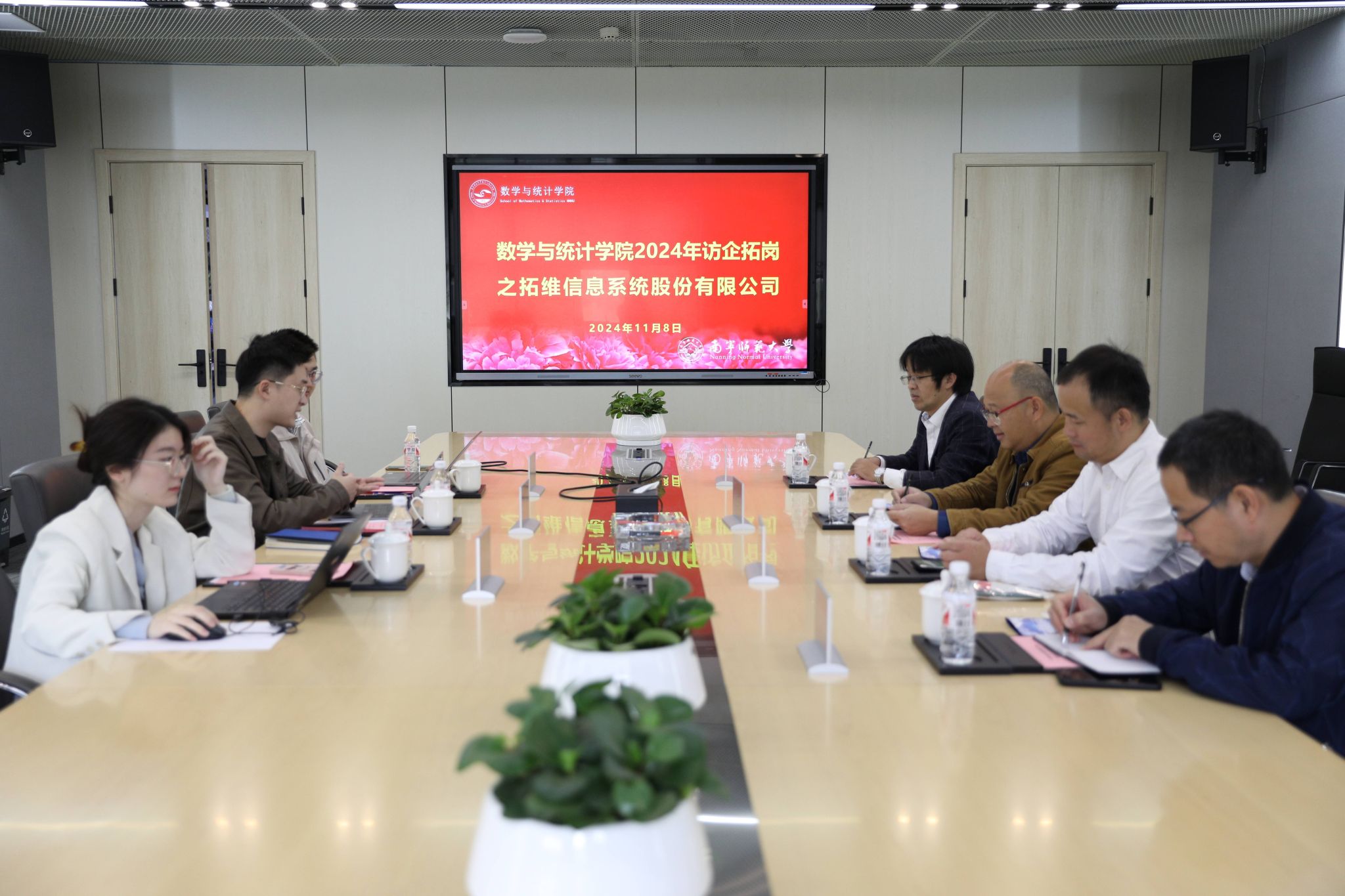 11月9日,学院一行人到湖南省算海科技有限公司进行访企拓岗活动。在该公司魏华袆经理的带领下,黄在堂院长等人与算海科技的主要负责人进行了座谈,座谈中交流了该公司的产业、运营等情况,也了解到该公司2025年的招聘需求和岗位类型。座谈中,付进副书记着重介绍了学院毕业生的就业创业专业匹配度,刘利斌副院长重点介绍了学科发展的优势和学生培养的方向,并建立实习实践教育基地的想法。算海科技魏经理充分肯定了学院培养学生的质量,并与学院就实习实践教育基地如何建立进行了探讨。