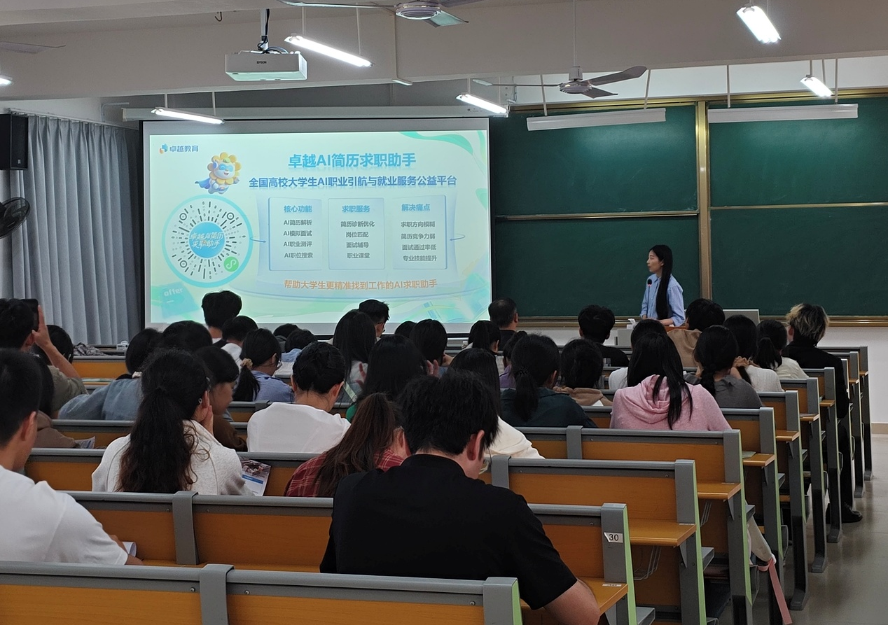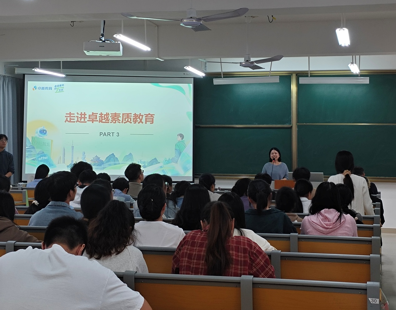 宣讲会由学校学生就业中心栾祖香老师主持,鼓励同学们积极把握校招机遇。随后,卓越教育集团校招经理王巧巧系统介绍了公司概况,并展示了公司自主研发的“简历AI助手”。紧接着,黄毅东副总校长以学长的身份分享了其职业成长路径与集团的教育理念,为毕业生树立了贴近现实的榜样。最后,佛山片区师训经理林洁萍生动介绍了片区特色与人才需求,并向同学们发出热情入职邀请。