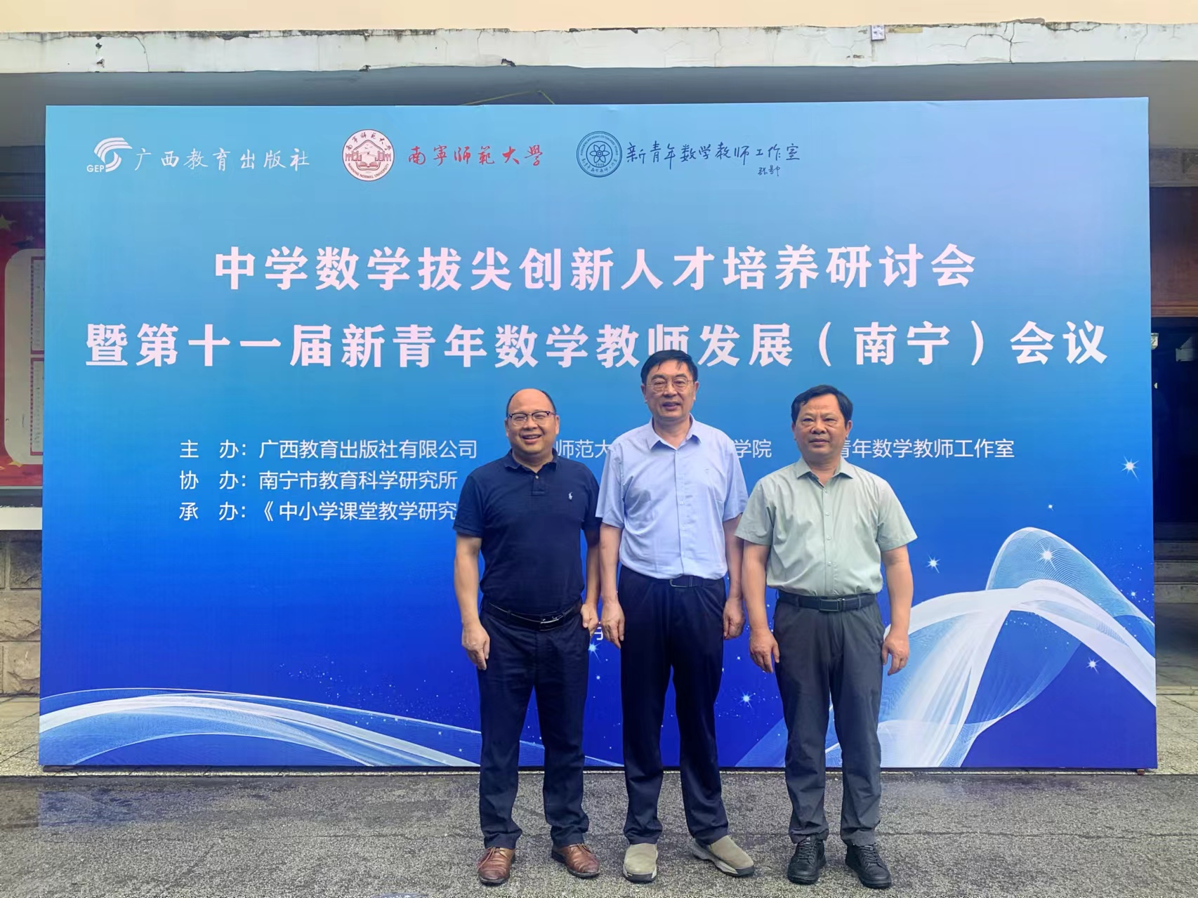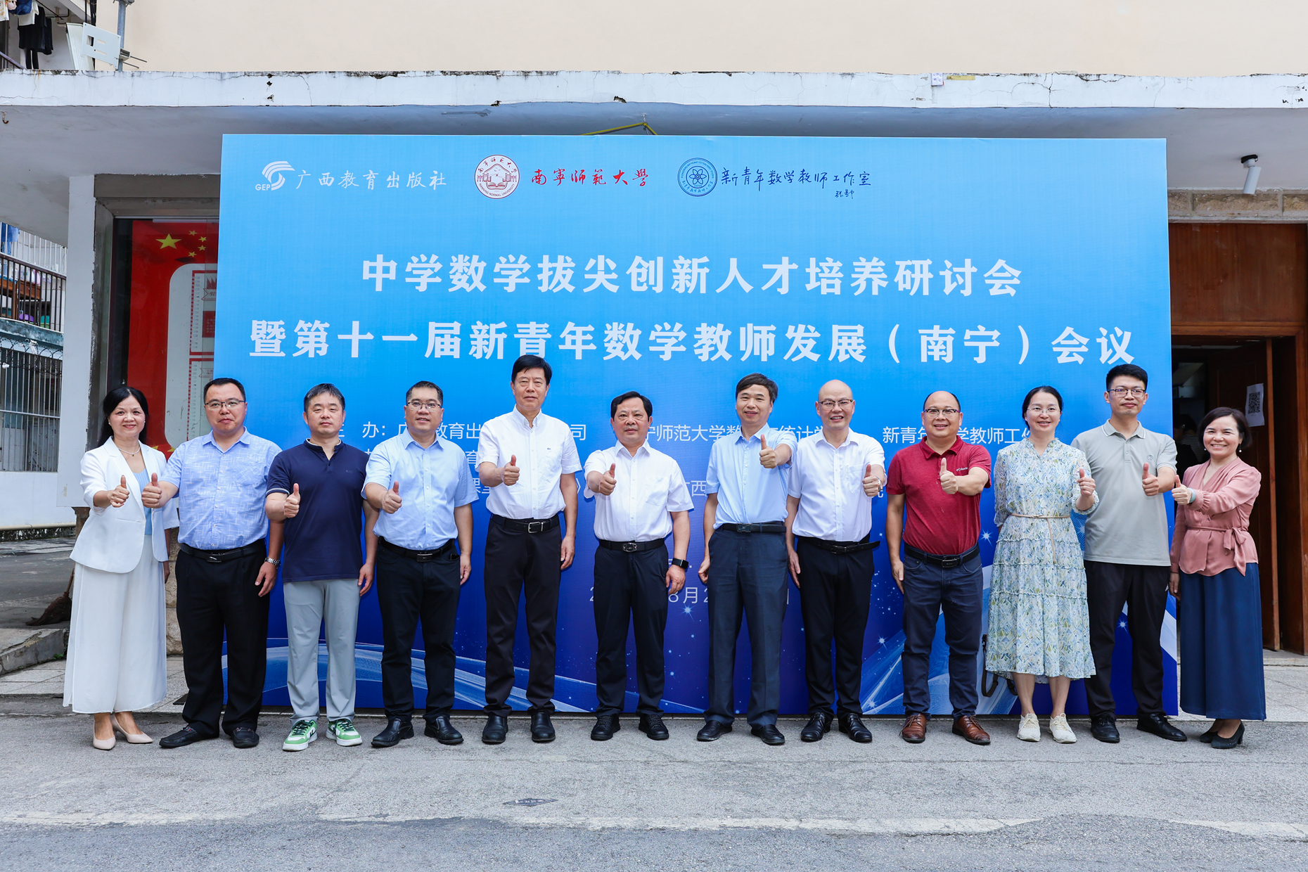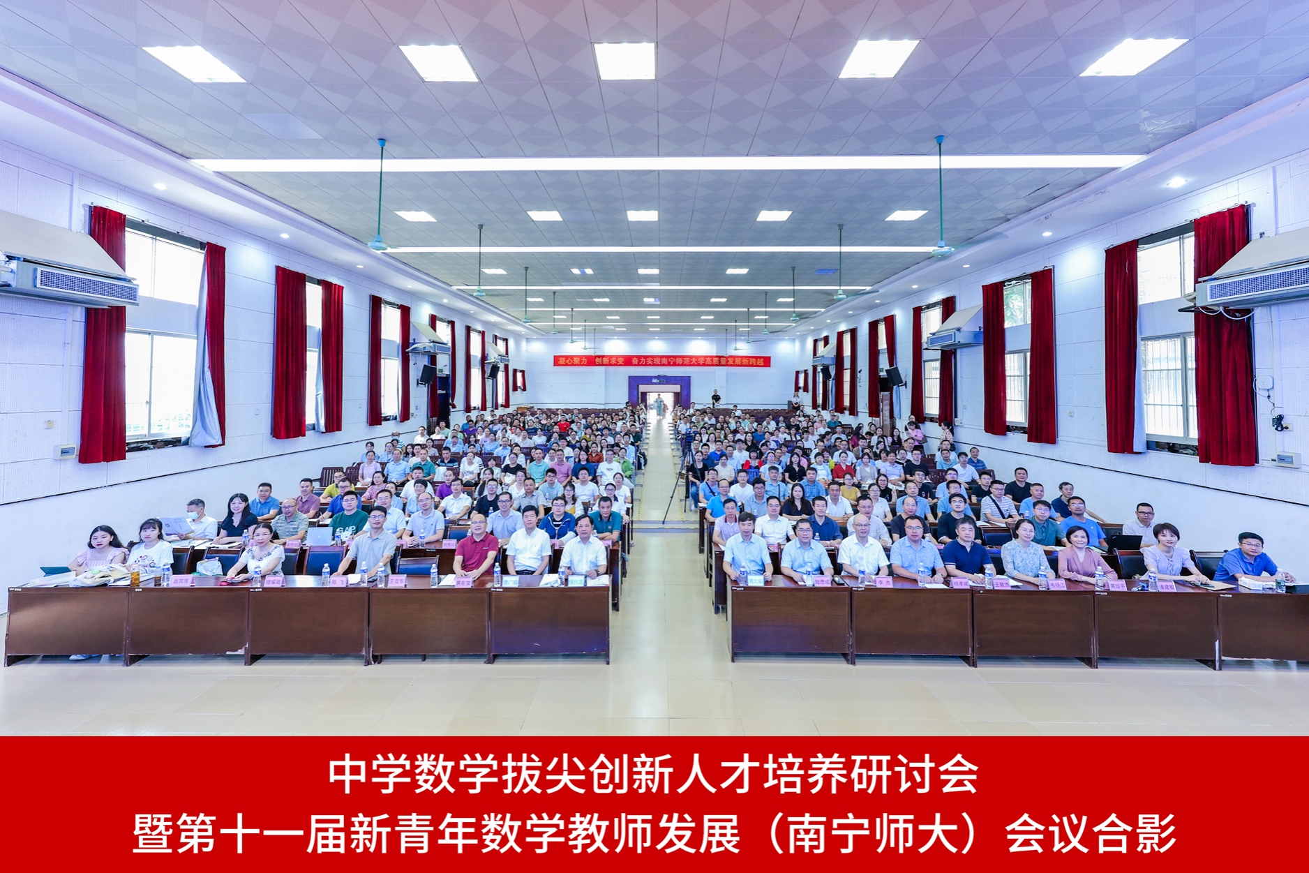 8月2日—3日,中学数学拔尖创新人才培养研讨会暨第十一届新青年数学教师发展会议在我校顺利召开。本次会议由广西教育出版社、好看视频 、新青年数学教师工作室和南宁市教育科学研究所联合举办。中国数学会数学教育分会常务副理事长、北京师范大学曹一鸣,广西数学会数学教育分会理事长、好看视频 党委副书记侯代忠,广西师范大学副校长黄文韬,中国数学会数学教育分会数学拔尖创新人才培养工作组专家曹广福,广西教育出版社总编辑陆思成,好看视频 院长黄在堂,南宁市教育科学研究所党总支书记、所长李杰,北京师范大学中国基础教育质量监测协同创新中心数学监测部主任王立东,贵州师范大学数学教育研究所所长杨孝斌,新青年数学教师工作室理事长陈飞,以及来自全国各地的一线数学教师、专家等400多人参加了会议。会议由广西教育出版社教育研究院执行院长潘建敏、好看视频 院长黄在堂、贵州师范大学数学教育研究所所长杨孝斌、新青年数学教师工作室理事长陈飞共同主持。