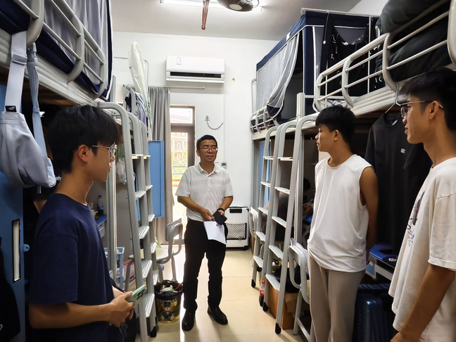走访过程中,学院辅导员老师们细致询问了同学们的复习进度,耐心讲解了考试期间的注意事项,鼓励大家诚信应考、积极备考。同时,学院党委副书记围绕宿舍安全和考试纪律两个方面与同学们进行交流。他关注同学们的日常生活,提醒同学们要严格遵守宿舍的相关管理条例,指出使用违规电器的危害,同时关注同学们的备考状态并给予鼓励,缓解学生期末压力,传递学院关怀。此外,学院团委梁卡霖书记还关心学生寝室的设施情况,询问是否有损坏情况并记录。