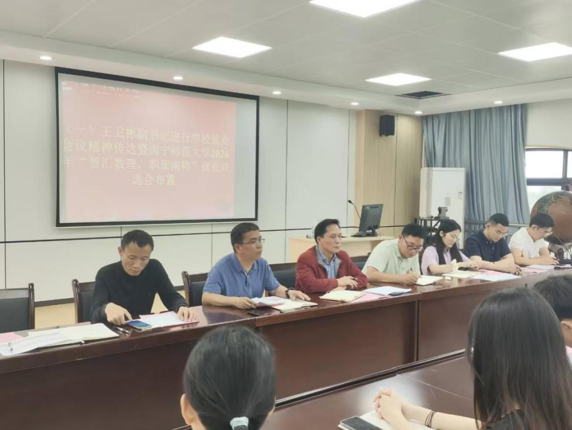 2026年“智汇数理,职聚南师”就业双选会相关筹备工作,明确双选会组织、学生动员、岗位对接等重点任务,随后结合学院专业特色与就业形势,对下一阶段学院就业创业重点工作进行全面部署,细化工作目标、压实工作责任,强调要聚焦毕业生求职需求,强化分类指导与精准帮扶。
